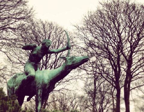 遇到好天气,在城市公园大草坪上热闹非凡:年轻人和老年人相聚在此,踢足球、野餐、晒日光浴、放风筝。在大草坪边上是个游乐场,那里有摩天轮、滑梯和其它的游乐设施。在齐膝深的水池里有个特别惹人喜爱的小水手。