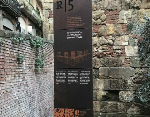 这一处遗址应该是巴塞罗那老城最古老的建筑了,它是古罗马时期的一处建筑,现在的高塔下面还能看到当时的青铜字母,历史非常的悠久了。