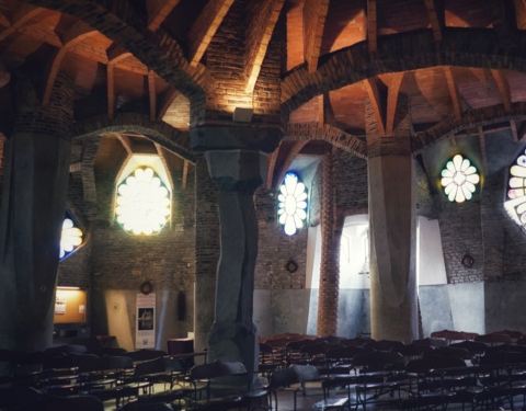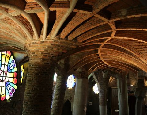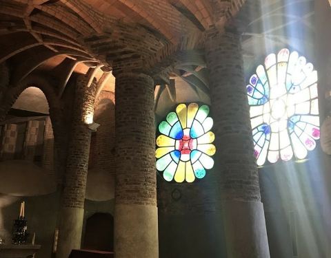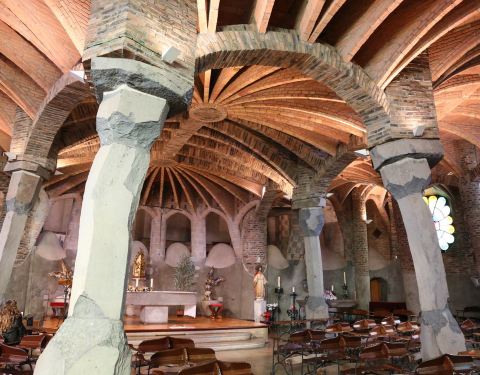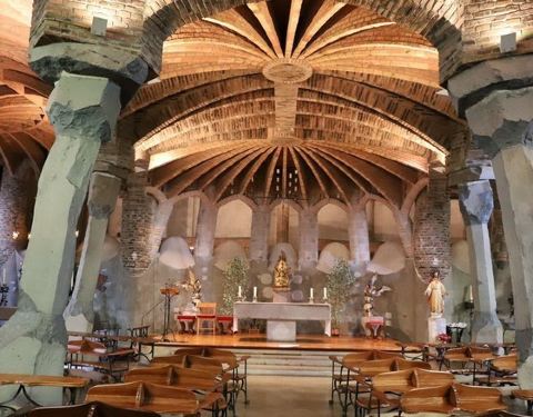 科洛尼亚古埃尔教堂是高迪众多充满想象力的作品中,最神奇的一个。其外观犹如岩洞,与周围的林木融为一体。未经打磨的石柱,教堂内的彩色玻璃窗都给教堂带来了一份神秘感。
