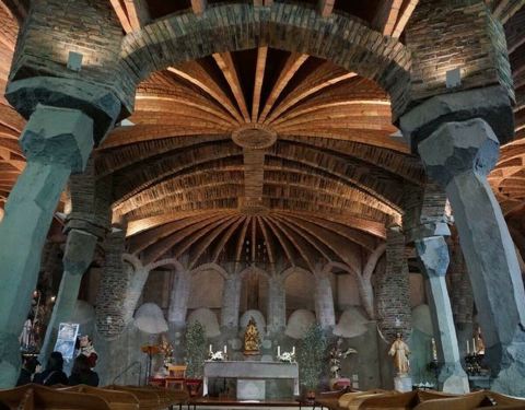 科洛尼亚古埃尔教堂是高迪众多充满想象力的作品中,最神奇的一个。其外观犹如岩洞,与周围的林木融为一体