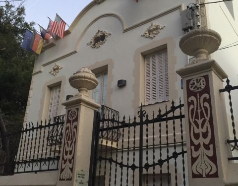 古埃尔庄园位于巴塞罗那西北角,是银行家古埃尔周末度假的别墅,建造于1884-1887年。高迪设计了其中的守卫室、围廊、马厩及部分的墙壁和大门。高迪因其出色的设计赢得了古埃尔的青睐,并有机会建造古埃尔宫、古埃尔公园等一系列作品。 “龙之门” 古埃尔庄园的外墙是高迪早期经常采用的穆哈德尔风格,采用彩色瓷砖作为装饰。右门柱高达10米,截面为十字形,以镇住守门的龙。门柱顶的雕塑创意来自棉株棉桃和橙子。传说,橙子树可以对抗魔鬼。左边门柱上刻有精美的十字和植物图样。 正面的铸铁“龙之门”宽约5米,以供当时居住者骑马进出。巨龙雕塑栩栩如生,目光如炬,看守着金苹果,高迪借以飞龙看守金苹果的传说隐喻宅第主人的高贵地位。此外,龙身还带有机械传动装置,控制门的开合。这扇门现在被认为是古埃尔庄园的典型象征。 驯马厅 此外,驯马厅也很值得一看,淡黄色的外墙体呈鱼鳞状,塔形天窗用蓝色几何马赛克装饰,驯马厅约有140平米大,地砖呈放射形排列,上有滑轮吊车,用来驯马。马厩大厅采用双曲面拱形结构,主梁是拱形,侧边每个梁之间也是拱形,十分优美,而且也便于采光。