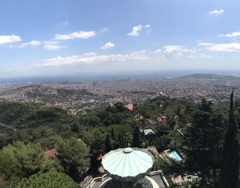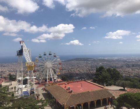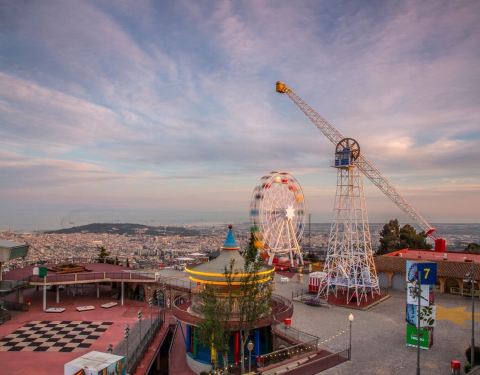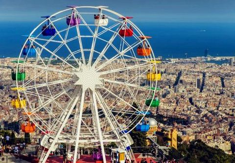 蒂比达博山位于巴塞罗那西北郊,是科利塞罗拉山脉的高峰,这片丛林茂盛的山地是巴塞罗那市民郊游的好地方。 圣心圣殿 山顶的圣心圣殿(Temple del Sagrat Cor)高耸入云,显得极为神圣。教堂顶部圣心雕像的脚下有一处瞭望台,巴塞罗那城市的全貌尽收眼底,直到海岸。 提比达波游乐园 蒂比达博山还设有一座大型游乐园,拥有100年历史,也是巴塞罗那标志之一。游乐园共有25个游乐设施,园区里还会有精彩的表演和街头戏剧。除此之外,这里还有一片500平米的区域被称之为“天空之城”,非常适合俯瞰巴塞罗那的全景、天际线。 科塞罗拉塔 此外,游乐园旁的科塞罗拉塔是1992年奥运会的信号发射塔,由诺曼·福斯特设计。信号塔瞭望台海拔560米,是俯瞰巴塞罗那的另一胜地。