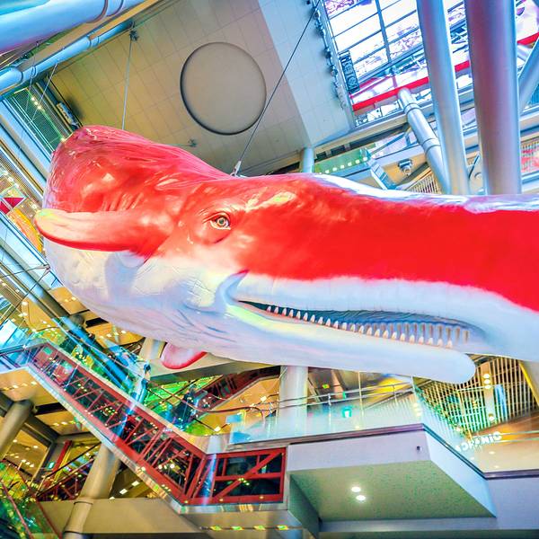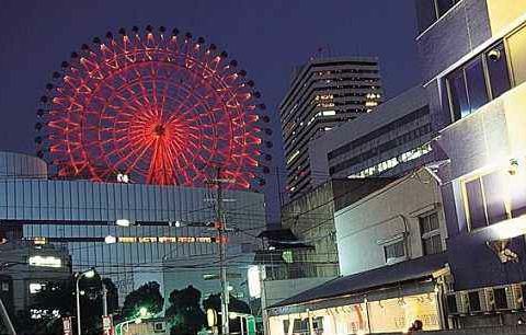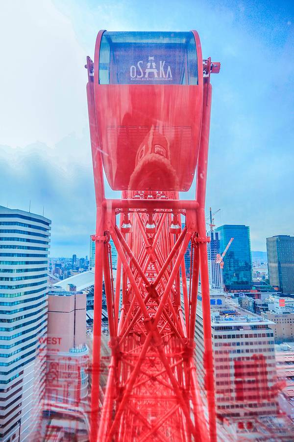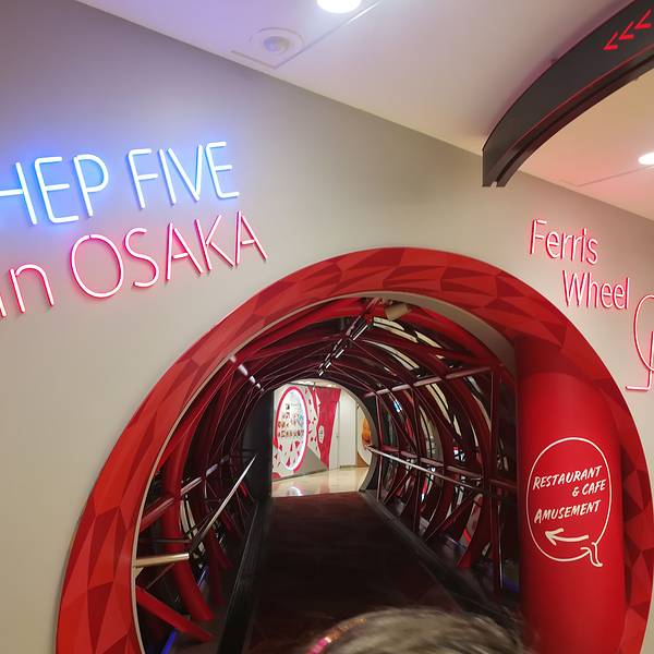 Hep Five 是一个综合购物区,位于梅田地区。在大厦的顶部,矗立着一座非常醒目的大红色摩天轮。没错,HepFive摩天轮就是一座坐落在屋顶的摩天轮。进入Hep Five之后,乘坐电梯到七楼,摩天轮的入口在这里。HepFive摩天轮的票价为600円,同样是周游卡免费乘坐。上摩天轮之前,工作人员会为游客拍照留念,如果满意的话需要花500円购买,但实际购买的人寥寥无几。之后,便可以享受到15分钟,绕直径75米旋转一圈的天际之旅了。摩天轮车厢穿过屋顶,上升到离地106米的高处,整个城市的景色一览无余。车厢的玻璃上有城市地标的贴纸,告诉我们哪个方向是哪个重要建筑。最高点可以眺望到明石海峡,但我更喜欢的是,看到了阪急电铁梅田站的车水马龙,铁道线路的交织足以说明这座城市的繁华。摩天轮车厢内的音箱可千万别错过了,位于椅子靠背的上方。可以将手机插上接口直接播放音乐,接口是圆口的,iPhone需要带一个转换线。让这短暂的天际之旅,赋予音乐的陪伴,还是自己收藏的歌单,太美妙了。摩天轮坐完之后,我们还在HepFive内逛了一会,它离梅田蓝天大厦不远,这两个可以一起游玩。