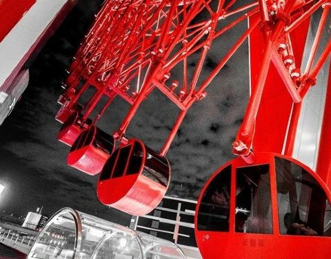 ...这一个区域的标志了,如果你有一日卡的话,还是可以来坐一下的,而且它是在一个建筑的旁边,还挺特别这个火红色的摩天轮已经成为了这一个区域的标志了,如果你有一日卡的话,还是可以来坐一下的,而且它是在一个建筑的旁边,还挺特别。