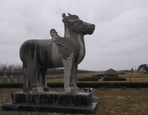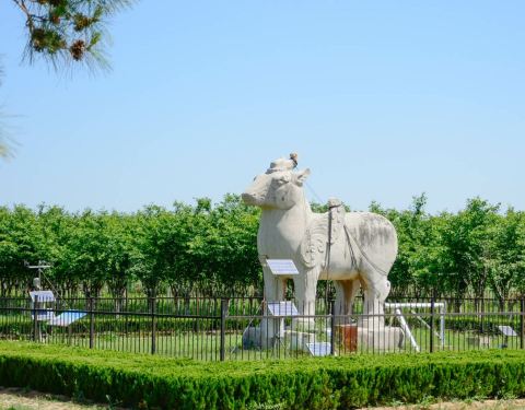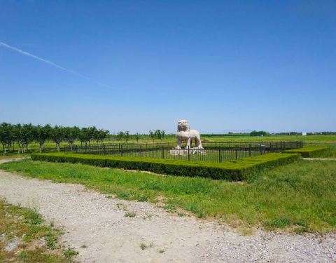 顺陵周边的环境很好,都是小树林和农田,放眼望去都是绿油油的,不时能看到飞机起飞,低空从头顶飞过的感觉真棒!顺陵,是武则天之母杨氏之墓 ,是惟一曾享有与帝后陵同等称号的皇家外戚墓,而它的规模宏大,石雕雄伟,气派无与伦比,也让历代皇家外戚望尘莫及。雌雄两只独角兽对望而立,守护着陵园,石像的某些位置都被人摸得发亮,传说摸雌的能生女,摸雄的能生男。所以当地人都喜欢来这里摸一摸 ,即使现在有围栏了,但到夜里还是有人翻越过来摸。