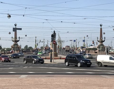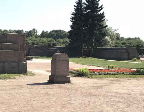 一个十分宽广的广场,可惜没啥树木,景观一般,中央有个纪念性的火炬台。而附近的夏园景色更美!它不是远在几十公里外的皇村(普希金城)的夏宫,园中最大特色是有一个大池塘,园林秋色也是非常漂亮迷人。所以说...