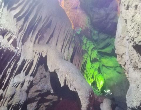 一个景色还不错的溶洞景点,在不同颜色的灯光照射下,千奇百怪的不同形状的钟乳石呈现出了另类的效果,感受还是挺好的