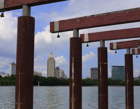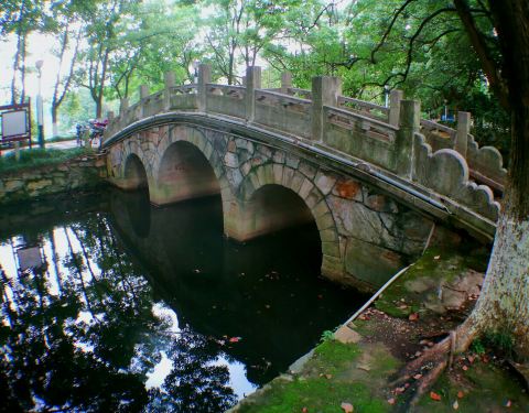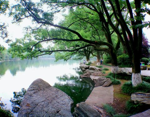 城市中心很难得见到这样的湖,水很清澈,大概和不远处就是长江有关,所以这里是活水。名称来源可能是湖面大致成一个扭曲的几何图形。每到夜晚,午夜时分,月光斜照湖面,水天一色。这也就是著名的池州八景之一的...