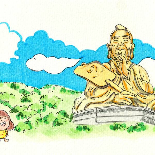 拜一拜净高33米的老子神像,老子手心下直径1米的真马蜂窝很稀奇。