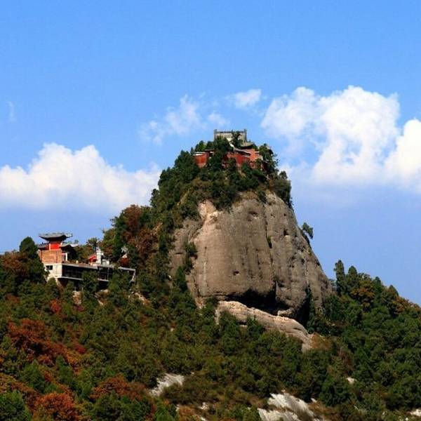 高高山峰树立而起,古老的中国元素传统建筑依山而,远远望去,犹如世外桃源,显眼的花把山装饰的非常漂亮,像待出嫁的女人一样。