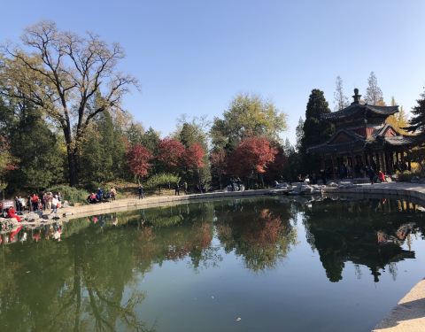 正是香山赏时,一早从酒店过去,幸运的是司机不熟悉酒店的东西南北门,但他恰好住香山附近,走了小道我们很快就到了香山,看着那一群群旅行团,和大量学生,再想想导航图的那红得发紫的路线,感觉真是幸运[强],...
