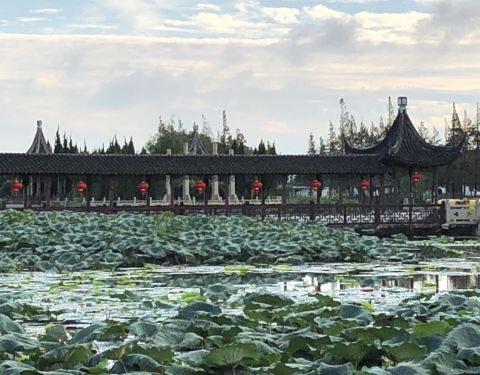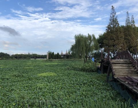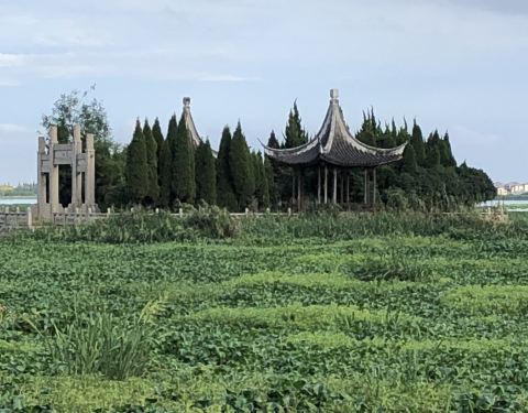 陈妃水冢是锦溪古镇主要景点之一。本来是有一段栈桥可以走近一些的,但栈桥破损禁止通行了,只能远观了
