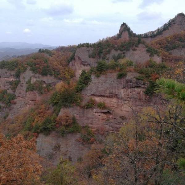 还不错,深秋去的满山树叶五彩斑斓。岩壁是红色的丹霞地貌特征,山顶悬崖峭壁,特别适合拍摄悬崖照,小松鼠居然不怕人,直接来手里抓东西吃。