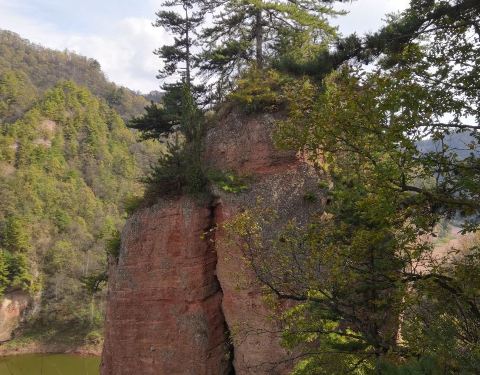 岩壁是红色的丹霞地貌特征,山顶悬崖峭壁,特别适合拍摄悬崖照,小松鼠居然不怕人,直接来手里抓东西吃还不错,深秋去的满山树叶五彩斑斓。岩壁是红色的丹霞地貌特征,山顶悬崖峭壁,特别适合拍摄悬崖照,小松鼠居然不怕人,直接来手里抓东西吃。