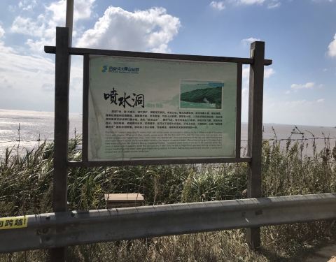 喷水洞位于大青山上,每次海潮在洞口翻滚回转,声音轰轰作响,水花飞溅,挺壮观的