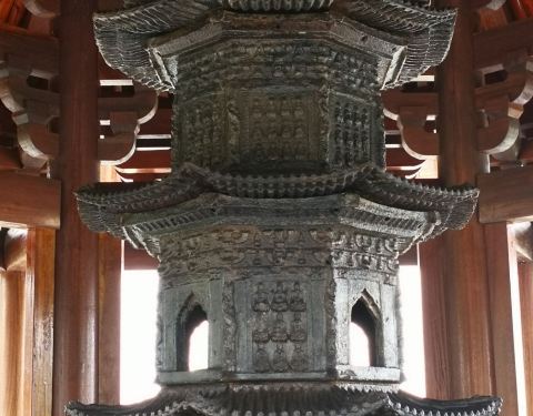 铁塔不在新修的双林禅寺里,而是在水库西岸,塔旁也有一座双林古寺,是上世纪八十年代所修,比较简易,也不全是仿古建筑。真正的双林寺遗址其实已经成为水库了,剩下的古迹就是铁塔,确实精美,可惜只残存两层以及塔座和塔刹。