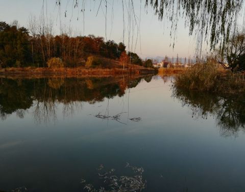 在义乌赤岸附近,一个不要门票的小景点,不大人也还挺多的,可以划船、登山