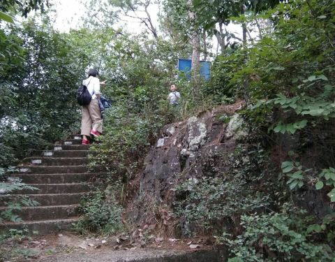 就是胡公殿,依山傍水,大树成荫,年龄偏大一点的可以只到殿的位置,基本上可以爬到山顶上,都有台阶,最上面是一个大平台,但还没有建设好,杂草多,我们还有意外收获。