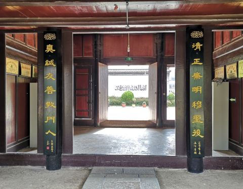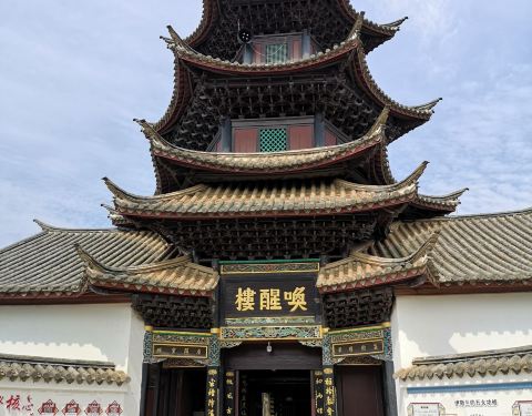 这里是一个免费参观的景点,平时可能还在开展信教的活动,这里只有一个院落,里面很清净,在大门口有一座唤醒楼,楼的前面有一个照壁,照壁的旁边有棵柳树,柳树的对面有拖姑清真寺的石碑,去的时候,有一个小朋...
