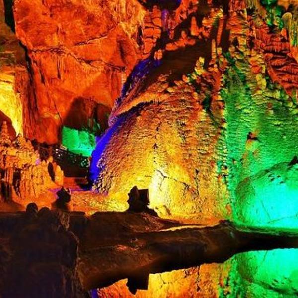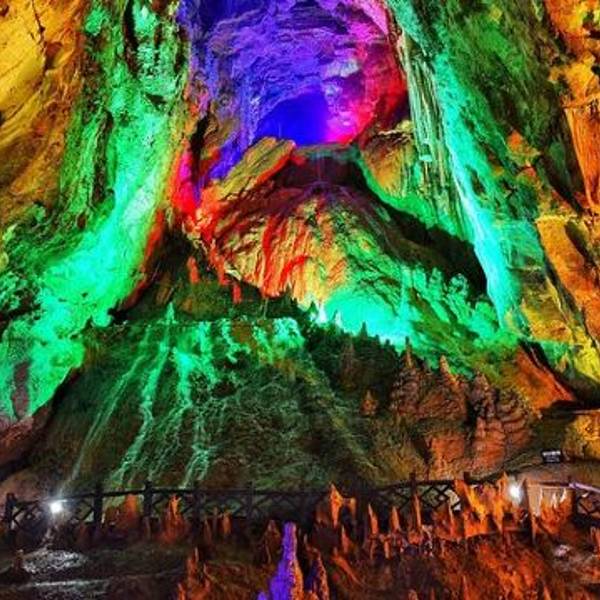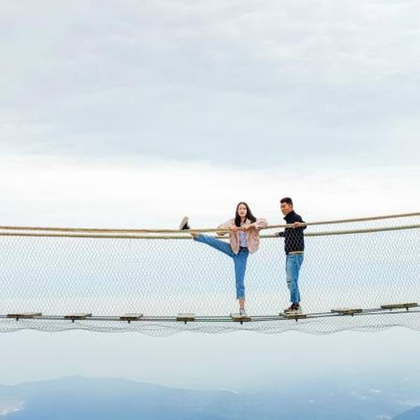 九皇山景区分布着各具特色的高山溶洞,内部千姿百态,鬼斧神工,这里是摄影爱好者的天堂。即使不会摄影,用手机随手一拍也是大片。还有一座情侣桥值得情侣们去走走:一座灵巧轻盈的钢索桥将两座如情侣般遥相呼应的凤凰亭紧紧地连在一起,桥下是万丈深壑,高山峡谷,走在桥上,犹如漫步云端。九皇山景区还有高空特技表演、原始森林、沙朗晚会和滑道等项目等你去探索。