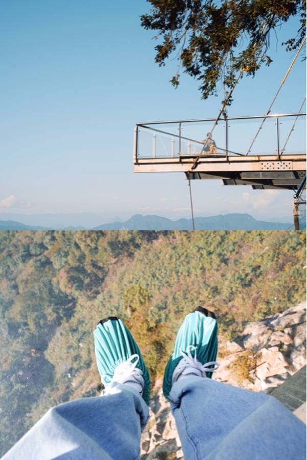 栈道直接建在悬崖上,一开始还会害怕,但习惯了就还好。玻璃平台上的风景🏔️也不错。