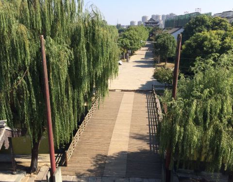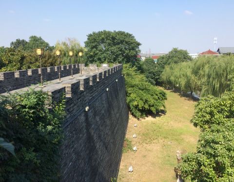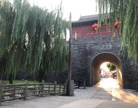 宣德门就在宰相府第风情街的尽头,有城门门楼和古城墙。据介绍乾隆四到盐官,均由此门进入。古城门城墙是否为修复的不清楚,景观还是不错的,登上城楼可俯看宰相府第风情街、护城河。