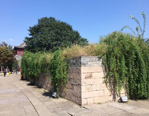 宣德门就在宰相府第风情街的尽头,有城门门楼和古城墙。据介绍乾隆四到盐官,均由此门进入