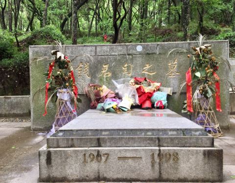 ...海宁博物馆对面的西山公园的山坡上,墓地是后来重建的,墓的右手边是他小儿子的墓,像一个很小的盒子