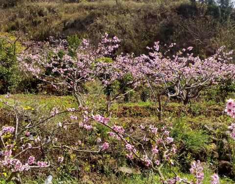 先坐车到连山,在转公交到松林镇,穿过桃花节。今年是第14届桃花节,满山都是桃花,但是可能气候偏暖,有些都开过了,开始长叶子,没有太大片成规模的。再就是设施还欠缺,虽然修了骑行道,但是没有厕所,农家乐办得很随意。柚子不错,很多柚子树。