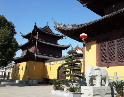海宁的西山山麓,很古老的寺庙,现在翻新过看起来很雄伟