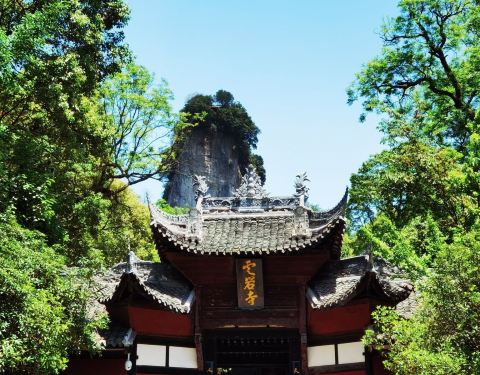 窦圌山景区,又名圌山,位于四川江油城北20公里的涪江东岸,是剑门蜀道的重要组成部分。这里是登山赏景的不错选择,一路上可以欣赏到各种奇峰异景,感慨于大自然的鬼斧神工,体力不好的游客也可以选择缆车游览。 峰下不远处有一座云岩寺,可以去寺内看看珍藏的道教文物“飞天藏”。圌岭铁索飞渡堪称神州一绝,在山顶可以看到惊险刺激的走高空钢丝表演。相传唐代彰明(今属江油市)主簿窦圌(字子明)隐居于此,故名。自麓至顶约5公里许,行道迂回盘旋,林木苍翠,景色秀丽。 李白少年时曾游此山,题下千古绝句“樵夫与耕者,出入画屏中。”