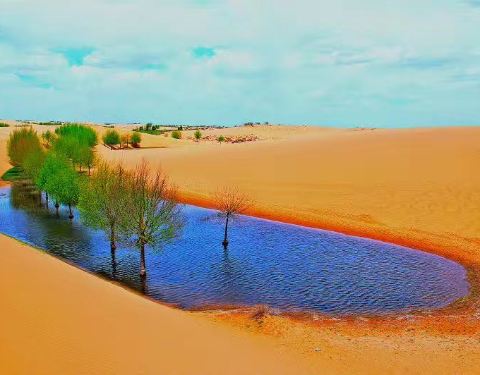 内蒙古鄂尔多斯市乌审召镇,原生态,沙漠,林场,沼泽,湖泊,湿地,草原,飞鸟,野兔,古庙,矿泉,温泉,蓝天,白云,环保于一身的人间美境!