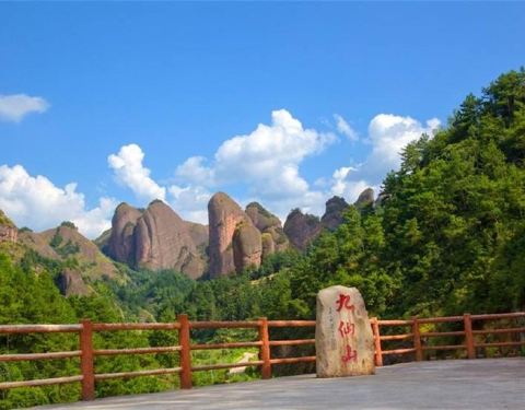 九仙山风景区位于福建有名瓷都德化,山被火山岩覆盖,岩体大部分都露在外面,气势很是壮观。山上生长着大片的黄山松,千姿百态,其中以螺旋松、莲台楹令人称奇。野生红豆杉在山中也十分常见,生长茂盛壮美,国内外多家画刊都刊登过它的照片。四周的山梁弯间都是原始次生林,遮天蔽日。 景区有三绝“日出、云海和雾松”,只有运气足够好才能欣赏到三绝中的一绝。山上气象万千,有佛光、云海、雾凇等奇观。四季景色如画,春有杜鹃花海;夏有松竹吐绿;秋有红叶铺径;冬有雾凇垂玉。山顶常年烟雾缭绕,空气非常清新,是好的避暑名地。如果你是下午登山,建议带一件长袖,以防感冒。登山途中,你会看见四周的别墅风光,感受到山脚和山顶天然的气侯差距,攀爬冒险的天梯,遇见曲径通幽处,清泉石的美景。 景区内部还有很多的旅馆和酒店可供选择,只是旺季的时候要提前预订。如果是想要看日出和日落的朋友可以选择住露天的帐篷里,但要注意山里夜晚比较凉,建议准备一些保暖的装备。