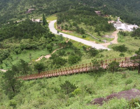 轻松路线:景区下车点(仙缘饭庄)——灵鹫岩寺(前后殿、明代虎橱、撒尿童子、说法台、露天大佛)——邹公槃台——蟠龙栈道——只有天(摩云洞、面壁、风动石、聚仙台)——天空之镜(网红打卡点)——气象站——沿大路返回乘车点。这条路线适合带有老人小孩的游客,大部分是沿着公路行走。