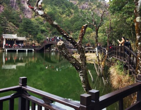 推荐给你们: 停车场-天池-气象台(这是先往下再往上)-八仙过海-直上云宵-九十九洞(这是下山...九仙山 位于德化赤水镇,春节人真多呀! 停车场都停的满满当当的好是壮观! 票价涨了呀! 原来记得是20元和5元车费, 今年上去是55元门票和20元车费, 差别好大,不过上山的路开车需要15分钟还是有点距离, ...九仙山 位于德化赤水镇,春节人真多呀! 停车场都停的满满当当的好是壮观! 票价涨了呀! 原来记得是20元和5元车费, 今年上去是55元门票和20元车费, 差别好大,不过上山的路开车需要15分钟还是有点距离, 到了山顶停车场有明显的指示牌几条线路按自己喜好走。 我选择的路线觉得还不错,推荐给你们: 停车场-天池-气象台(这是先往下再往上)-八仙过海-直上云宵-九十九洞(这是下山路线)还有几个景点没印象。 整体爬山程度不累,沿途都有休息的地方,也有树荫还是设计的合理。 春节期间天气超好,爬山爬到出汗,太酸爽了。 整体说还没有完全规划好,尤其是进山入口那要好好规划下肯定更完美。 值得一去。 据说每年冬天的雾淞都美的不像话。 希望有机会可以看到实景! 展开