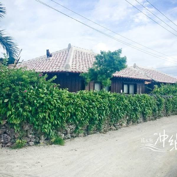 回到西表岛的乘船处,继续前往竹富岛,外面风浪越来越大,台风真不是闹着玩呀!十分担心会不会回不去石垣岛……竹富岛是一个将原始建筑保留很完好的琉球小岛,被绿树环绕的红色屋顶,簇簇缤纷花朵倚石墙而盛开,全岛通为白沙小路,沙滩颜色很清新干净,有很多美丽的贝壳,还有星砂。 到了竹富岛,有三个可以选择的游玩项目。水牛车、自行车、玻璃船。玻璃船就是坐着船的两边往水里看,透过玻璃可以看见各种小鱼,这个如果浮潜会比透过玻璃更好,带着小孩子可以来体验一下~不过风大的时候会取消~自行车就是把团员带到到中央一路骑行到海滩。 由于我们没选这里的游玩项目,所以这里就是自由活动,自己选择回去的乘船时间了,一定要记好回程的末班船,不然就真的只能在岛上过夜啦! 停船的地点在竹富岛的东北角,而主要的游玩地点一个星砂海滩,一个Kondoi海滩,另外就是在岛中央的民居村落~ 岛上的风呼呼的当真不小,几番沟通我们上了一辆接送到岛中央的车决定租自行车去海滩转转。岛中央是村落的集散地,租自行车价格是统一的,一小时300日元。登记下时间和车号就可以出发啦! 骑车不到15分钟就到明星景点星砂滨啦,人不多,风很大!阳光下波光粼粼,清透的水面!云卷云舒,熊已挽起裤腿走向远方……虽然被大风刮的头发如此飘逸也不忘拍照……海滩入口基本没有星砂啦,基本一年比一年少了…… 回到岛中央,在安静的的村落走走停停。林间偶尔有间小屋,朱红色的屋顶正中央,矗立着一只小小的狮子,避邪的。在冲绳的很多民居房顶上都可以看到。狮子的名字叫“Shi-sa”听起来像掉了门牙时念的中文。风越来越大,赶紧回石垣岛躲躲休息吧!来顿正宗寿司补一补!