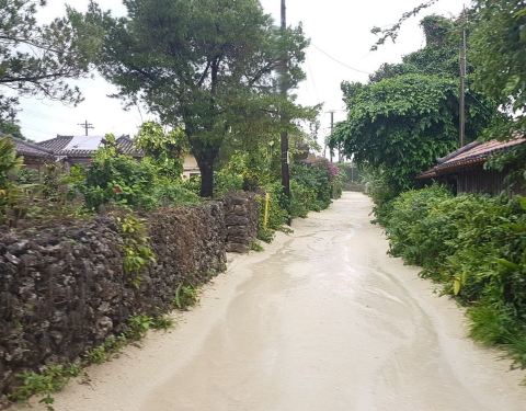 竹富岛位于琉球列岛的八重山群岛,在石垣岛的西南方约6公里,从石垣岛搭乘高速船约需10分钟。村落位于岛中央部份偏北区域,民房多为木造,道路多为白砂堆积,保留了早期冲绳的样貌。可以搭乘水牛车绕行岛上的老街,一边听著旅游导览以及三线弦的演奏。岛上对於文化保存非常重视,因此有以下规定:新建住宅必须得到许可,并有补助金协助铺设红瓦。不得进行以大规模度假开发为目的土地收购。岛上居民们努力的成果,维持了现有红瓦屋顶村落的景色,也成为岛上最大的观光资源,更进一步成为「传统建筑群保存地区」。