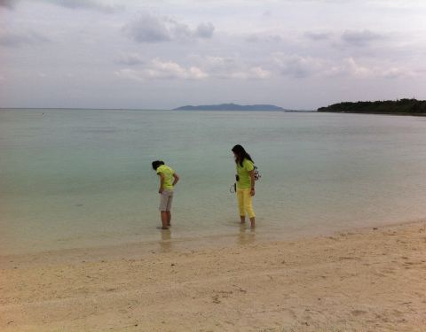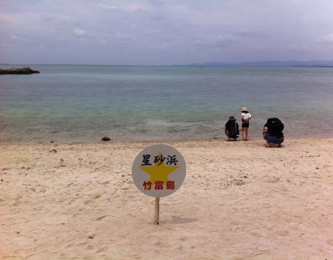 骑车不到15分钟就到明星景点星砂滨啦,人不多,风很大!阳光下波光粼粼,清透的水面!云卷云舒,熊已挽起裤腿走向远方……虽然被大风刮的头发如此飘逸也不忘拍照……海滩入口基本没有星砂啦,基本一年比一年少了……