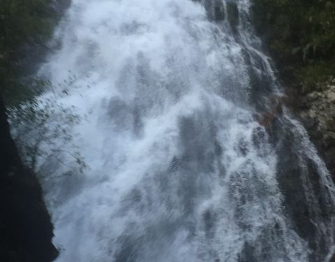 景区内的三重漈是一个有难度的溯溪徒步的好地方。三重漈最下面的三漈到了。三漈又称金钟瀑,三漈下瀑布汇成的水潭叫金钟潭。
