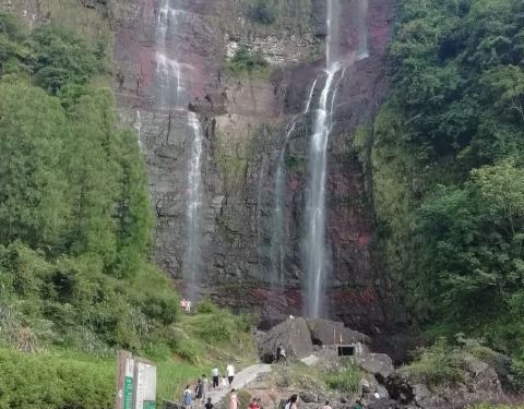 红岩双瀑非常壮观,落差高,站在很远就有细雨迷朦扑面而来,原生态,无商业开发,不需要买门票,值得一去。我们住在左溪村【畲乡遇见民宿】,离这儿只有3公里,民宿前有条清澈的小溪,环境很不错。