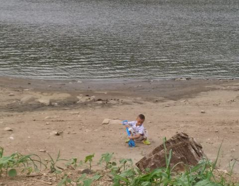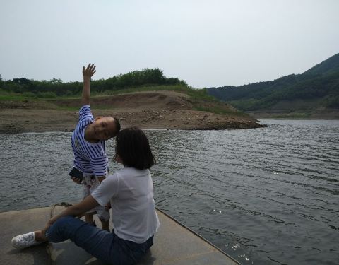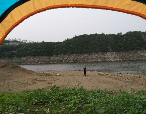 一个没有什么游玩项目,但却非常安静的地方,这里更适合想静静的人,周末的棋盘山就像停车场一样熙熙攘攘,而这里简直就是世外桃源,我来的时候水位很低,原来河底的沙石已经成为岸边,儿子玩得很开心,捡几根枯树玩起了,栽树砍树的游戏,搭个帐篷,来顿火锅,欣赏美丽的湖景,放松的很,提示一下,吃火锅一定记得带酱,上对岸光顾其他了,酱落车里了,现打的电话两岸折腾一下,这比喝酒不带瓶起子酸爽啊,很开心的一个下午,看多了钢筋水泥,出来透透气,静静地听着风吹过树林的婆娑,听着湖水的潺潺,和儿子享受最纯净的亲子时光,即便除了游船没有任何娱乐项目,很知足。 其实也不必刻意来对岸,顺着村子可以陆路到河边,那边的景色更开阔,由于时间原因我选择最初的计划就近安营扎寨,如果时间允许,可以选择更适合的露营场地,我周边还是有些之前钓鱼人留下的垃圾,青山绿水,还是要保护好我们的环境,为自己,为他人