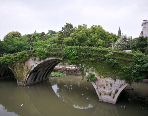 太仓的周泾桥据说是元朝建造的,现在桥身被爬藤缠绕孤零零地跨在河的两岸,显得特别沧桑。但是经过这么多年的风风雨雨,它依然保留了下来,这本身就是奇迹。