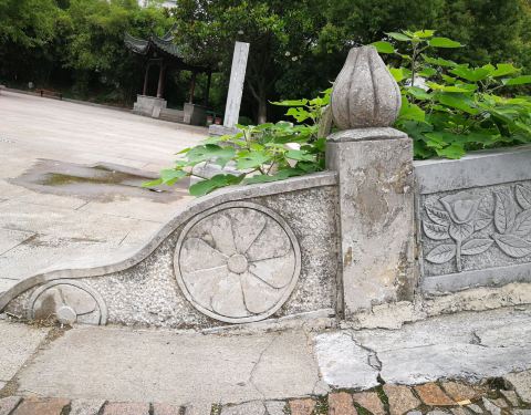 非常古老的元代石桥,桥并不大,但感觉非常沧桑,地上刻着海门第一桥,桥面中央一块3米长的龙门大石...非常古老的元代石桥,桥并不大,但感觉非常沧桑,地上刻着海门第一桥,桥面中央一块3米长的龙门大石上刻有八卦图案,桥身系青石建成,桥栏有缠莲枝等浮雕图案。