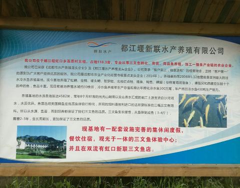地处虹口白沙河上游,空气新清,风景也行。三文魚和其它冷水鱼都很错,味道很好,新鲜都江堰新联三文魚体验中心,三文鱼及各种冷水鱼养殖基。地处虹口白沙河上游,空气新清,风景也行。住宿条件较好,房间有暖气,无空调。三文魚和其它冷水鱼都很错,味道很好,新鲜。