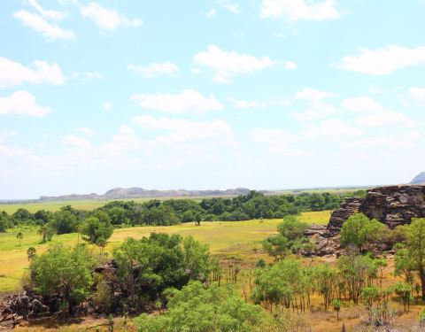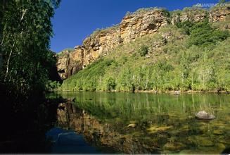 悬崖是卡卡杜国家公园里别具特色的景观。悬崖上有许多岩洞,里面有在世界上享有盛名的岩石壁画,已经发现大约7000 处。