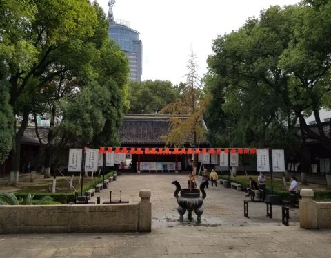现在的文庙基本被摊贩占据了,特色是:这里在卖花鸟鱼虫。江阴十日的起事处就在这里,当然知道的人不多文庙保存之完好出乎我的意料,毕竟经过清初的兵燹和太平天国运动的毁坏,已经有数百年了。江阴十日的起事处就在这里,当然知道的人不多。 现在的大成殿空间较大,至少比南通文庙要大多了。文庙该有的棂星门,泮池...文庙保存之完好出乎我的意料,毕竟经过清初的兵燹和太平天国运动的毁坏,已经有数百年了。江阴十日的起事处就在这里,当然知道的人不多。 现在的大成殿空间较大,至少比南通文庙要大多了。文庙该有的棂星门,泮池,大成殿一应俱全。另外,里面的孔子像不知道是不是新建,如果是古文物,价值就很高了。 现在的文庙基本被摊贩占据了,特色是:这里在卖花鸟鱼虫。 展开
