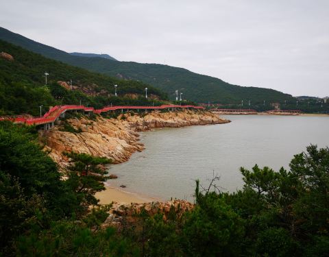 沿着红色栈道,可以欣赏沿途礁石的俊美,值得走一遭。有几个收费的水上娱乐项目,孩子、年轻人会喜欢沙滩还好,但海水卷裹着黄沙而呈现出黄色,加上阴天,看不到蓝天白云及蔚蓝的海水。有几个收费的水上娱乐项目,孩子、年轻人会喜欢。恰逢帆船队员海上训练,一睹其风采。沿着红色栈道,可以欣赏沿途礁石的俊美,...沙滩还好,但海水卷裹着黄沙而呈现出黄色,加上阴天,看不到蓝天白云及蔚蓝的海水。有几个收费的水上娱乐项目,孩子、年轻人会喜欢。恰逢帆船队员海上训练,一睹其风采。沿着红色栈道,可以欣赏沿途礁石的俊美,值得走一遭。 展开
