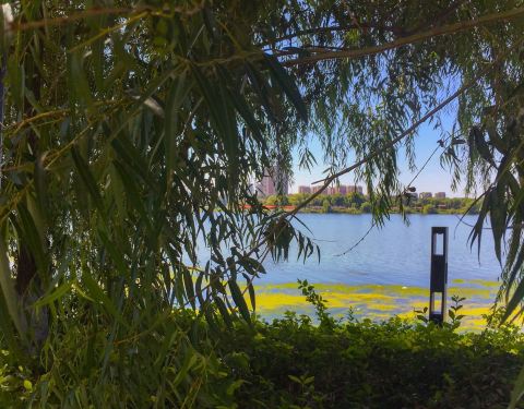 休闲健身消遣的好去处,景色特别优美。小桥流水绿树蓝天红花,一副天然的美图。