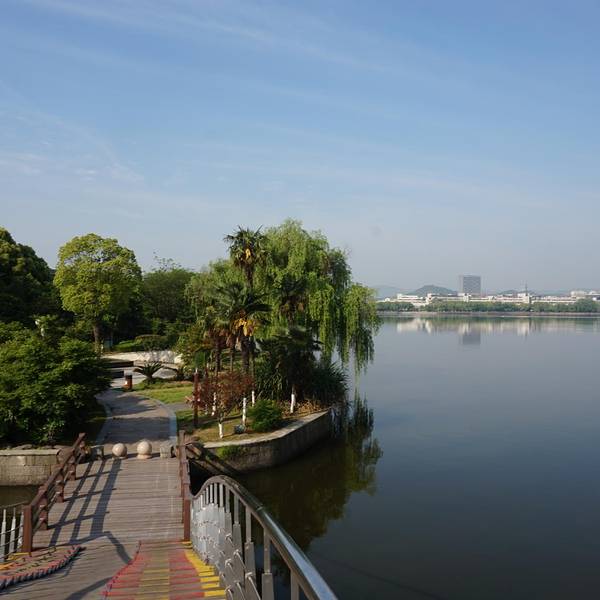 瓜渚湖是绍兴的第三大湖,在瓜渚湖的周围分别是东岸公园、南岸公园、西岸公园和北岸公园瓜渚湖是绍兴的第三大湖,在瓜渚湖的周围分别是东岸公园、南岸公园、西岸公园和北岸公园。离我们酒店最近的入口是南岸公园,南岸公园和东岸公园是相通的,早晨去瓜渚湖公园走走,呼吸新鲜空气,欣赏瓜渚湖的湖景...瓜渚湖是绍兴的第三大湖,在瓜渚湖的周围分别是东岸公园、南岸公园、西岸公园和北岸公园。离我们酒店最近的入口是南岸公园,南岸公园和东岸公园是相通的,早晨去瓜渚湖公园走走,呼吸新鲜空气,欣赏瓜渚湖的湖景,心境会变得很平静,只有心境平下来了,才能去感受这座城市的魅力。我去的是南岸公园,南岸公园的沿岸建造了一条观景道,道路很平稳,一直通往瓜渚湖东岸公园,有些绍兴市民早晨会来瓜渚湖公园晨跑,这里景色宜人,环境优雅,的确是一个非常适合晨跑的地方。站在南岸公园的岸边,左侧是瓜渚湖的西岸公园。瓜渚湖的景观步行桥(鹊桥)就位于西岸公园,步行桥的桥面离湖面大概只有40厘米,远处看仿佛是和湖面平行的。 展开