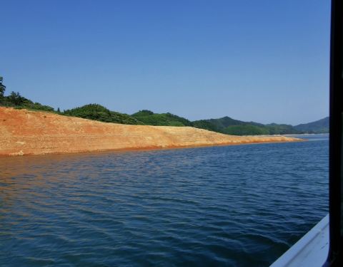 作为新中国标志性的水利设施,梅山水库虽然历史不短,现在看起来还有点旧了,但是水库的作用还是非常明显的,尤其在水质很好的金寨地区,真的好山好水的感觉。 这次来金寨特地过来逛了一圈,人很少,分为库区和大坝两块地方,库区的规模还是比较大的,最适合乘船游览一番,大坝因为天气非常热,实在是走不动了。 船在湖面上逛了一圈,说实话在湖上吹着风,非常的舒服,两边水库风景单调了一些,但是水很清也很凉,转一圈大概30多分钟,价格的话不算贵。